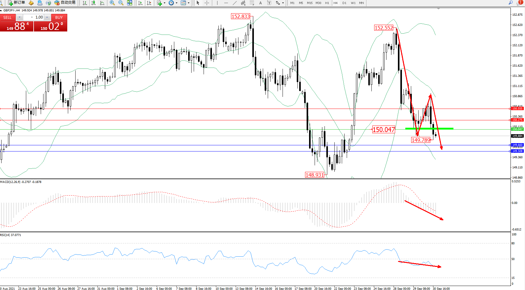 技术点评:高位空头动力延续布林带指标通道中下轨区间持续震荡下挫,低位抵达149.789位置后维持底部震荡,短期空头动力有进一步向下移动态势,跌势未见止步迹象,布林带指标呈向下移动态势良好,MACD指标处于0轴线下方空头区域维持整理下行,RSI指标处于50均衡线下方维持弱势整理;