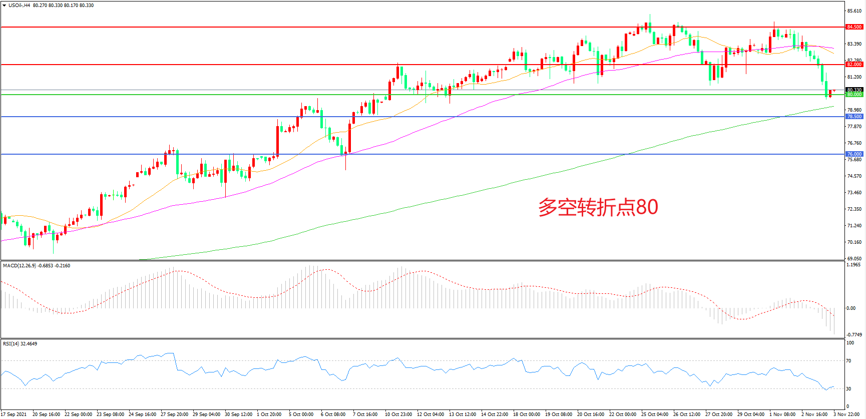 多空转折点:80.00