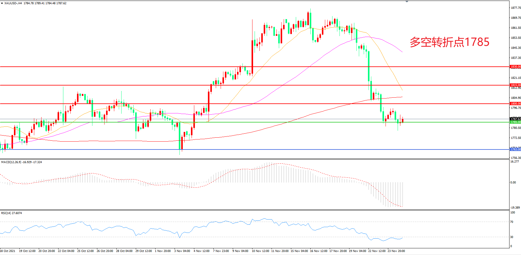 多空转折点:1785.00