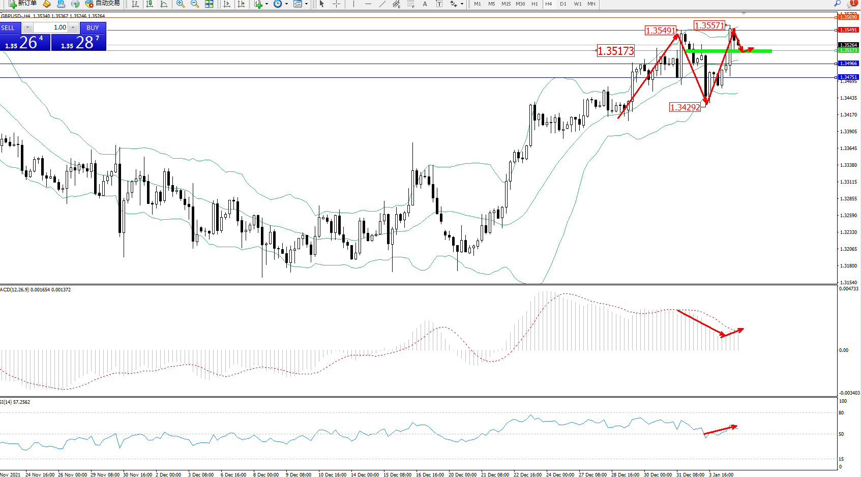 交易策略:1.35173上方看涨,目标1.35491、1.35690