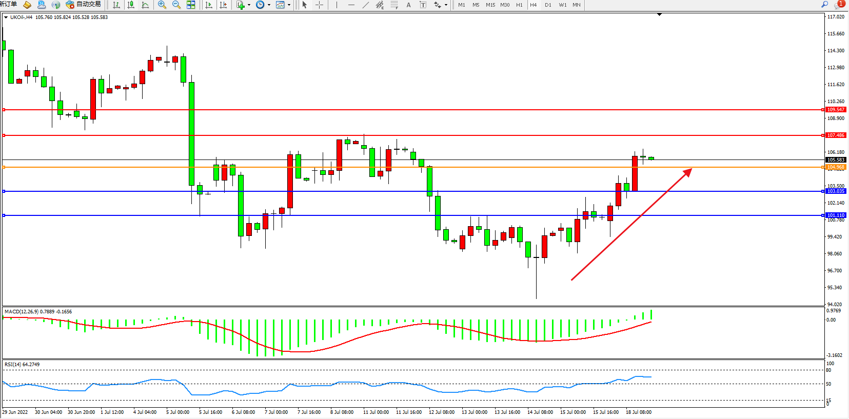布油UKOil——4小时K线图显示:
