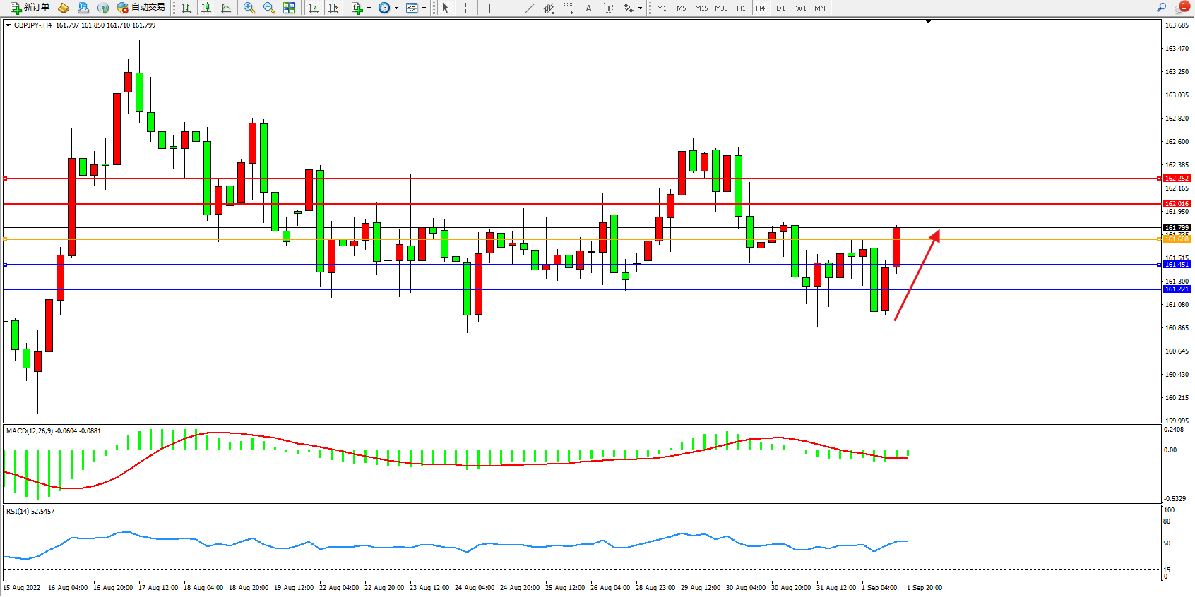 交易策略:161.688上方看涨,目标162.016、162.252