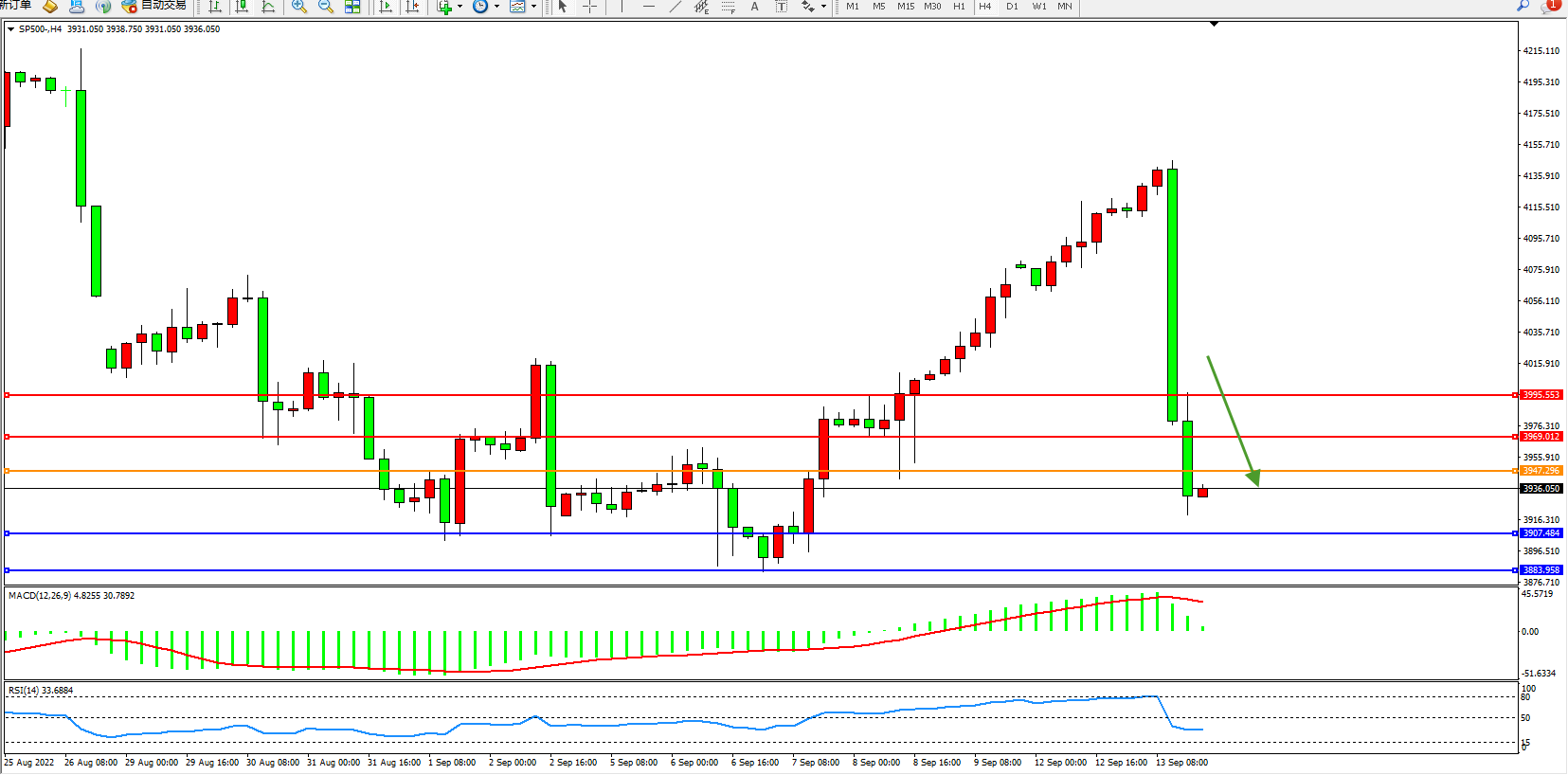 标普SP500——4小时K线图显示: