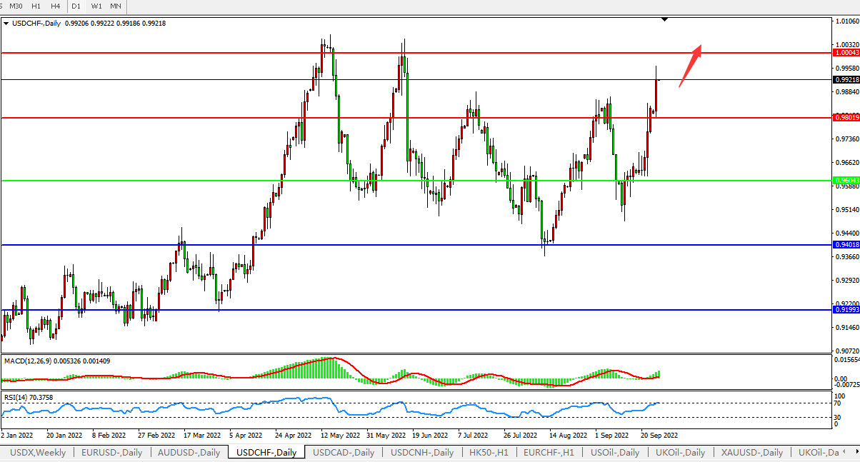 交易策略:0.9600上方看涨,目标0.9800,1.0000