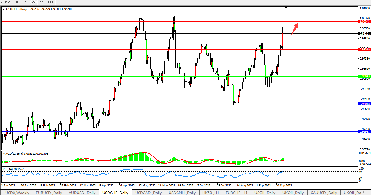 交易策略:0.9600上方看涨,目标0.9800,1.0000
