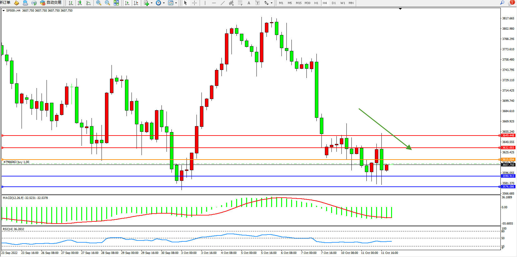 标普SP500——4小时K线图显示: