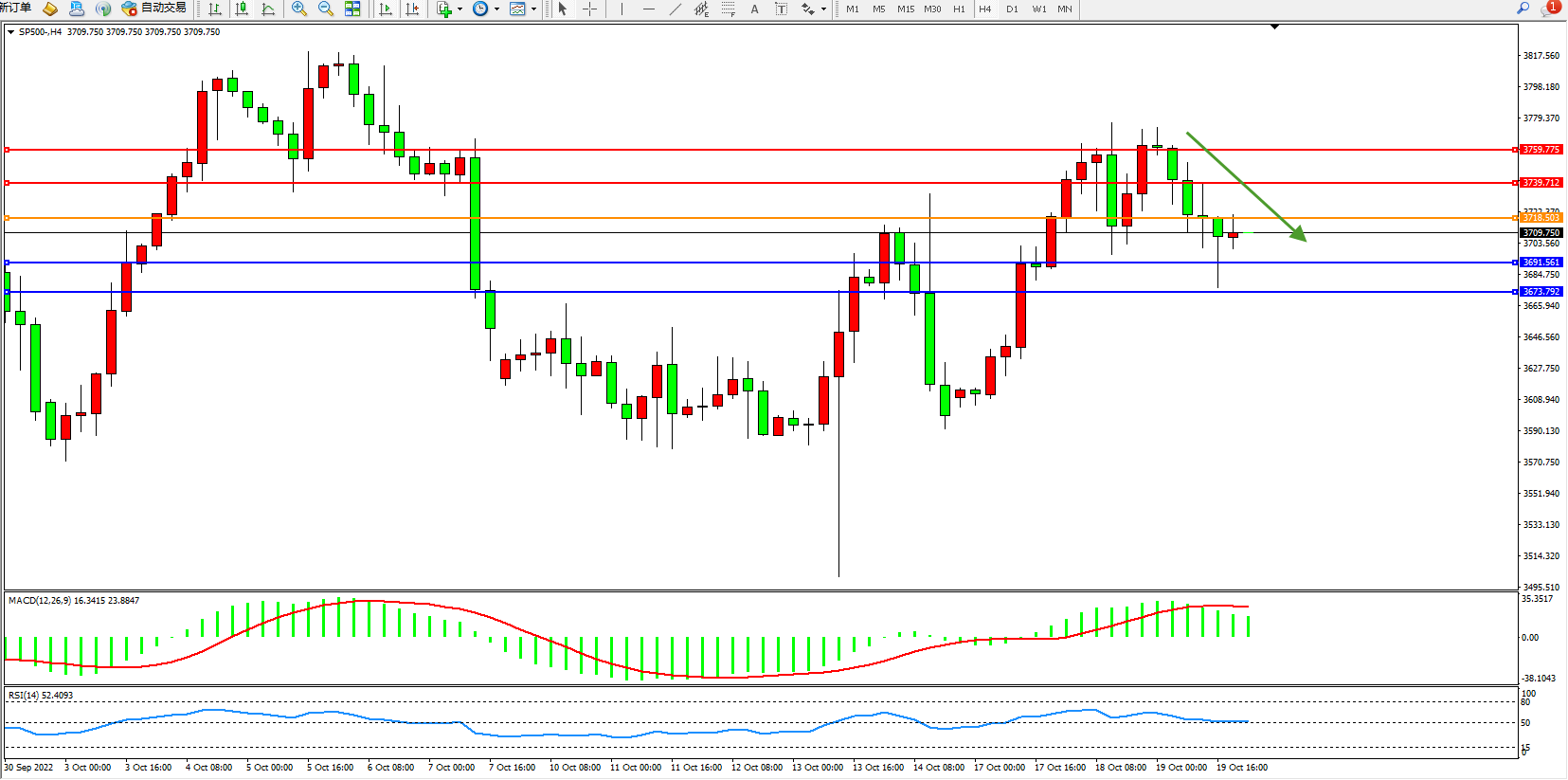 标普SP500——4小时K线图显示: