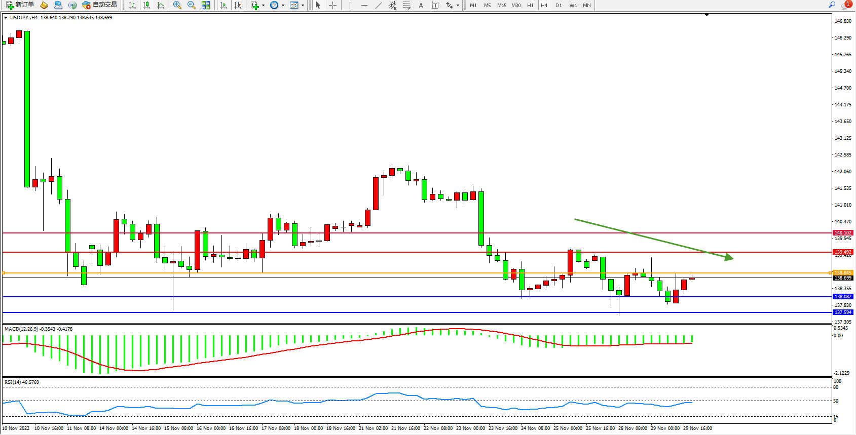 交易策略:138.845下方看跌,目标138.082、137.594