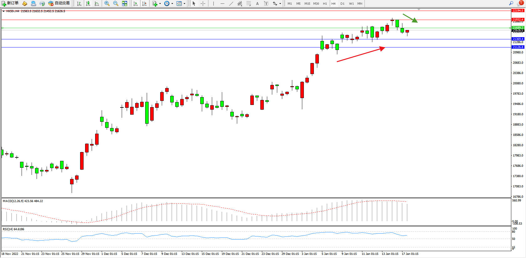 4小时图看:高位多头动力震荡上移,短期遇阻出现回撤走势,市场空头动力有伺机入场迹象,MACD指标处于多头区域整理,RSI指标处于多头区域缓慢回撤;