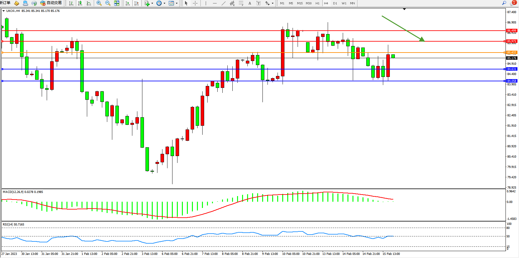 布油UKOil——4小时K线图显示: