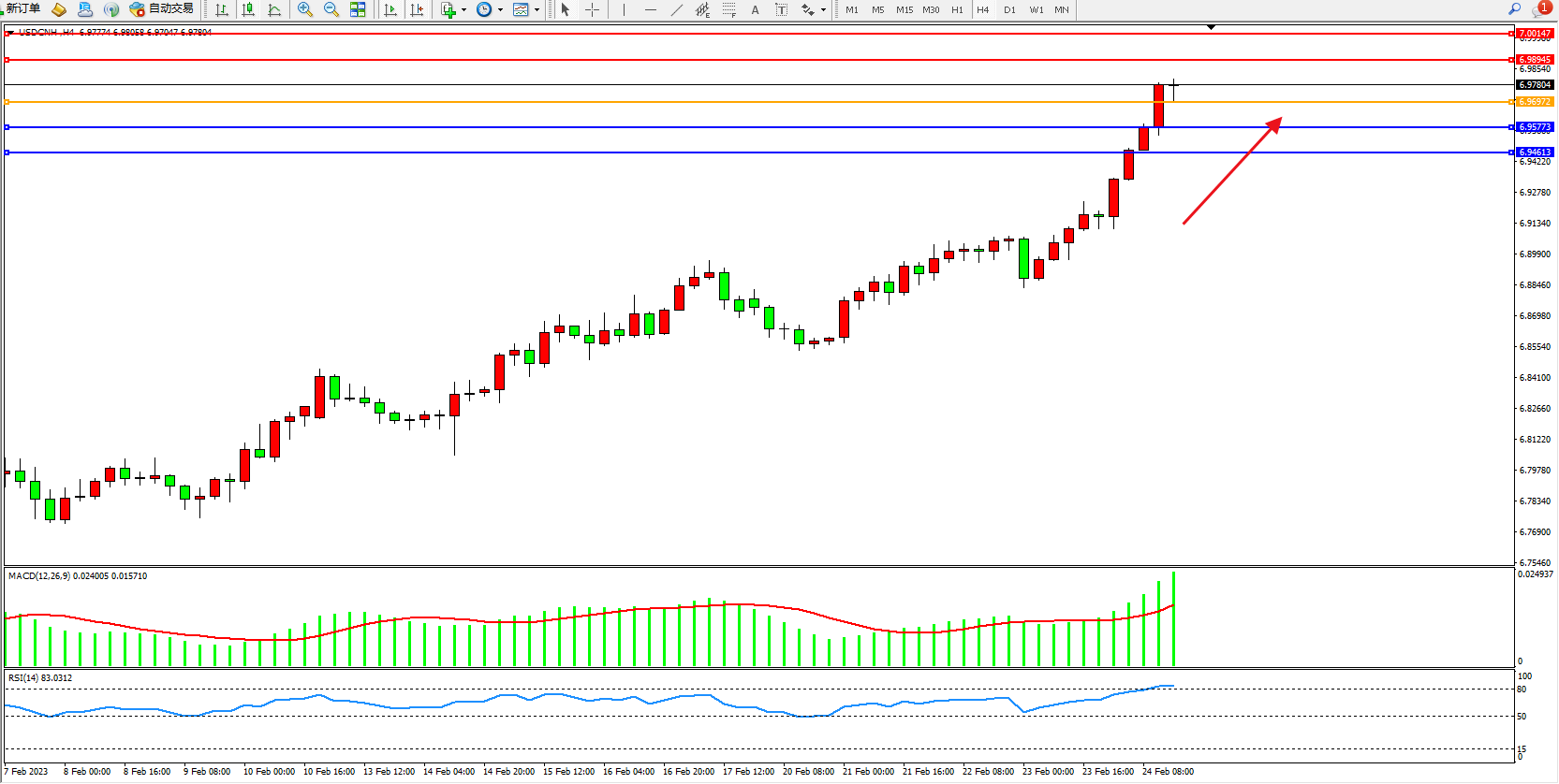 交易策略:6.96972上方看涨,目标6.98945、7.00147