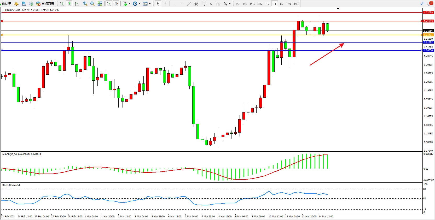 交易策略:1.21421上方看涨,目标1.21843  1.22099