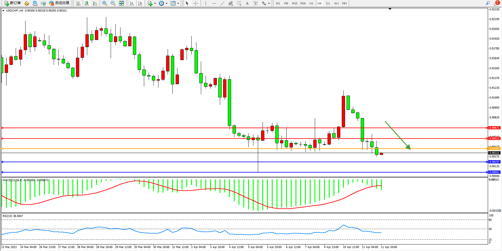 美元瑞郎USDCHF——4小时K线图显示:
