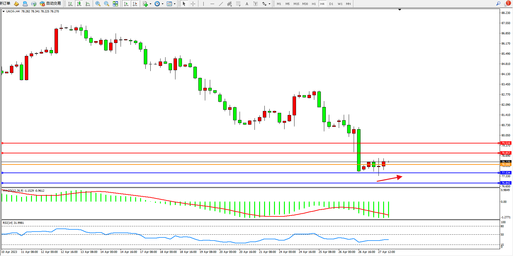 布油UKOil——4小时K线图显示: