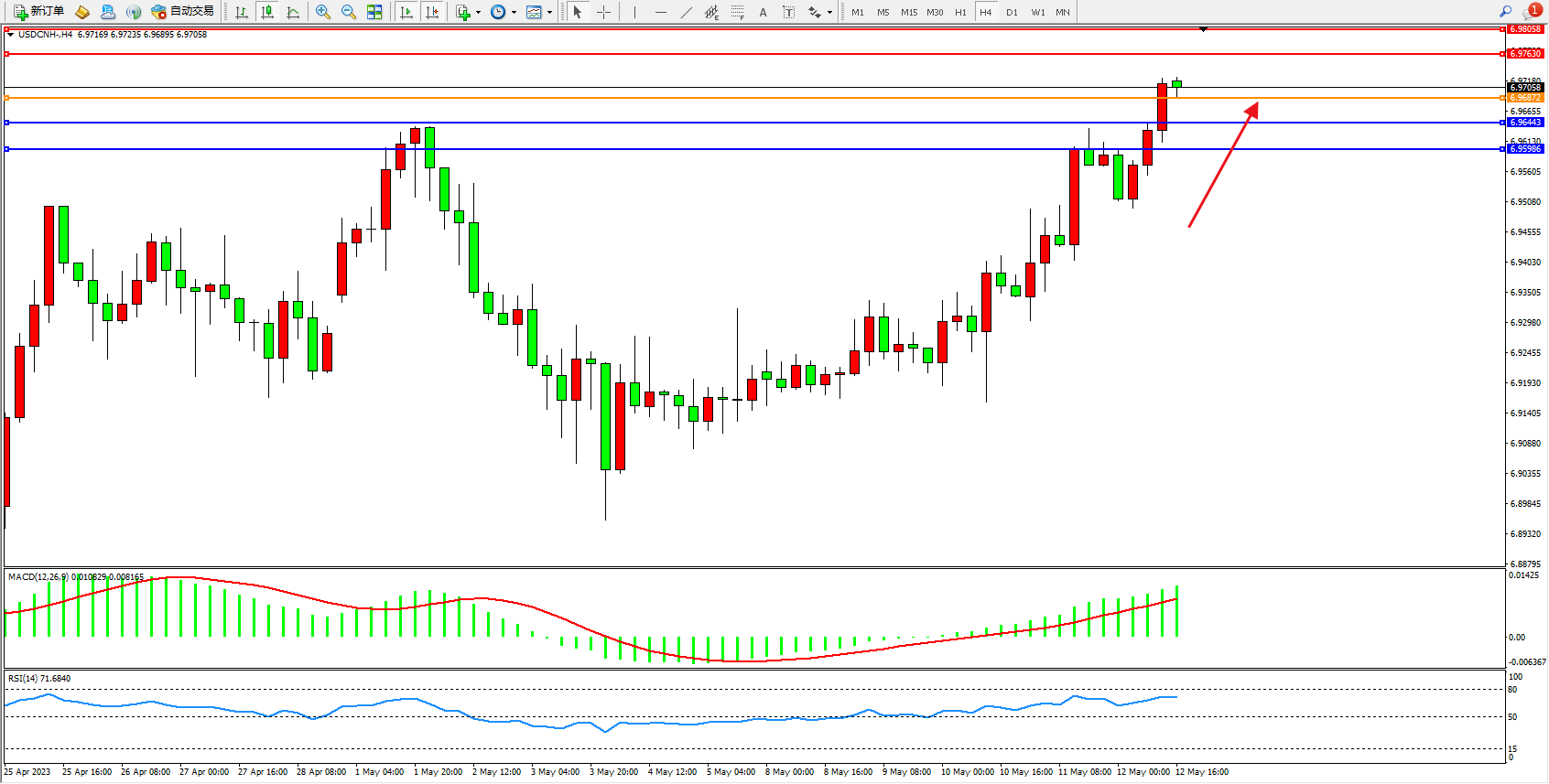 交易策略:6.96872上方看涨,目标6.96443  6.95986