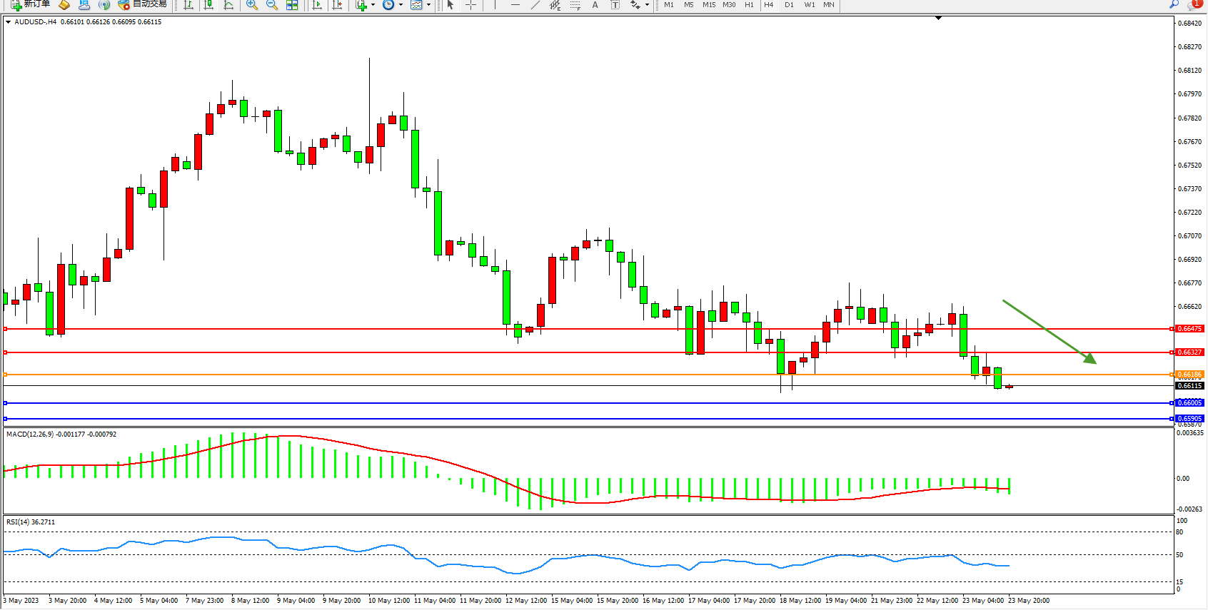 交易策略:0.66186下方看跌,目标0.66005 0.65905