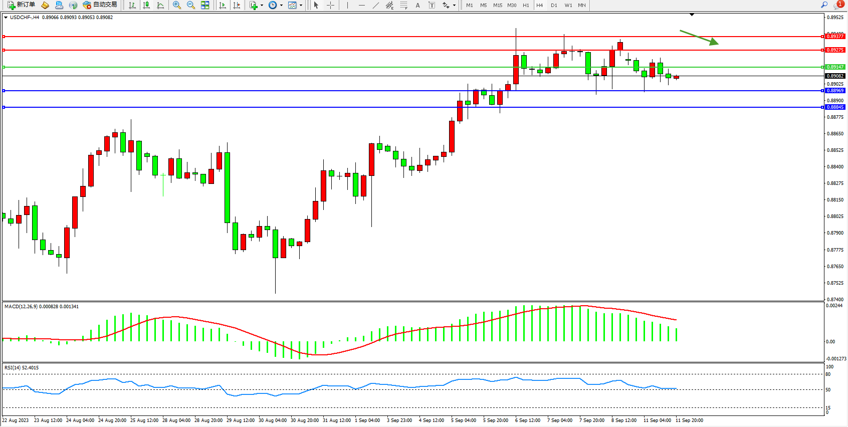 美元瑞郎USDCHF——4小时K线图显示: