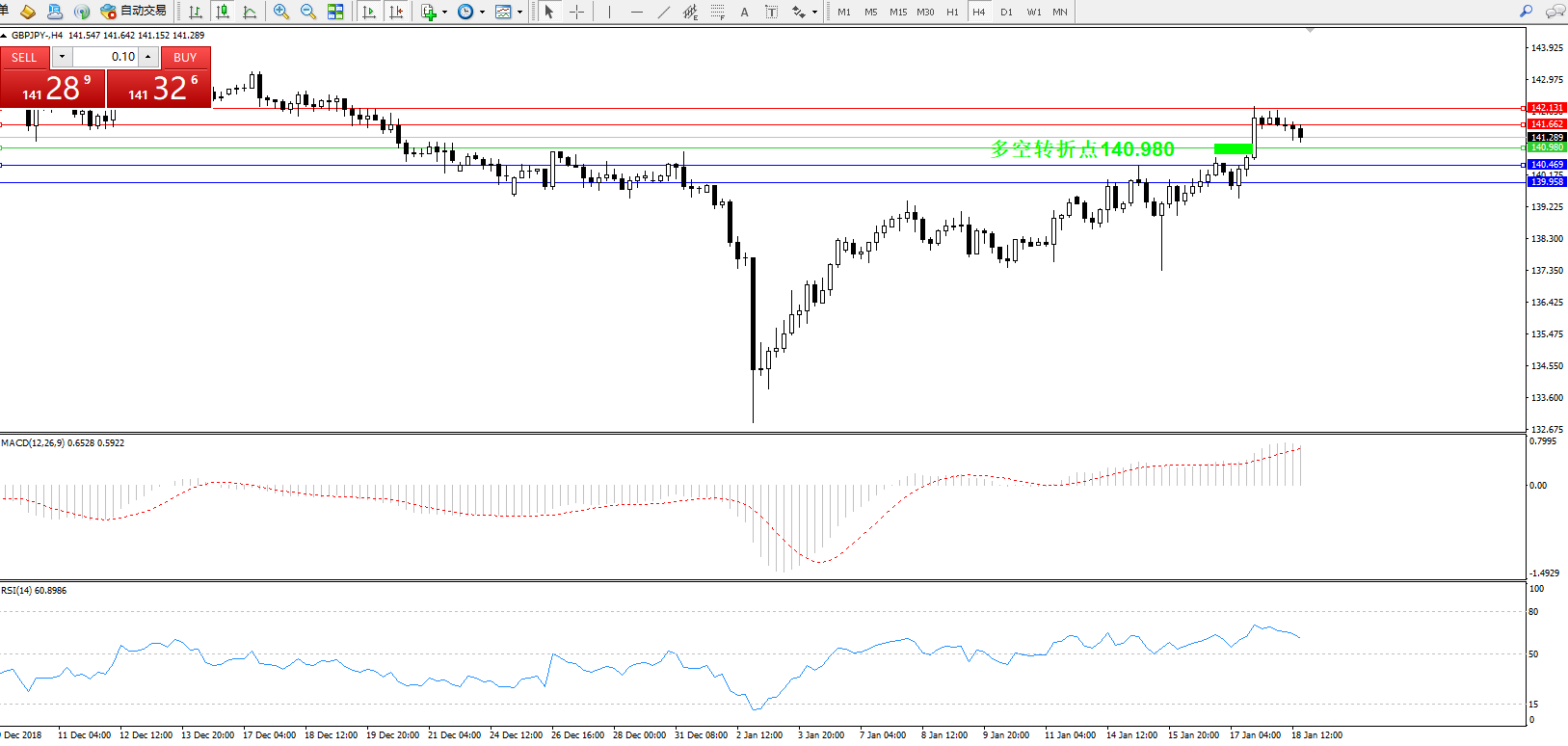 交易策略:140.980上方看涨,目标141.662142.131