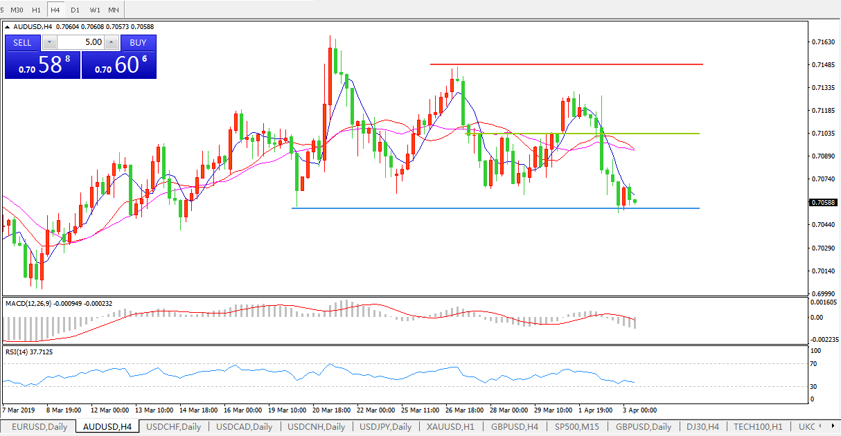 澳洲联储公布4月份利率决议,连续第29次维持1.5%低利率不变。由于其提到全球经济下行风险有所上升,且房地产市场依旧疲软,短线澳元兑美元冲高回落,现报0.7086,日内跌幅0.38%。澳洲联储官员一直对未来可能继续降息的前景持闪烁回避态度,但业内机构已经普遍预测其将在年内降息1-2次。4月2日澳大利亚政府本交易日将发布预算案,这至少可以为其经济带来喘歇,澳元汇价短线或许有望迎来反弹。