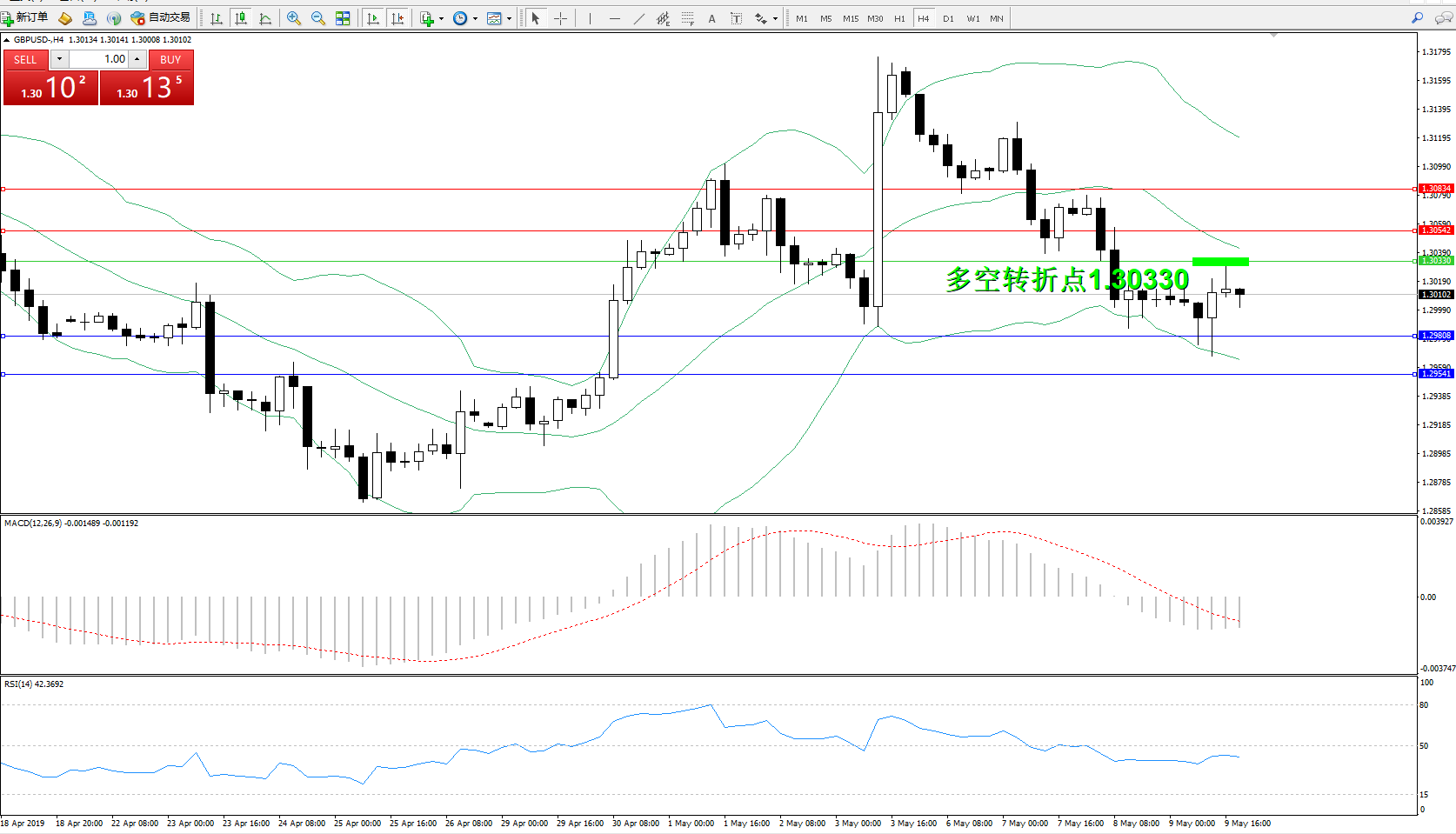 交易策略:1.30330下方看跌,目标1.298081.29541