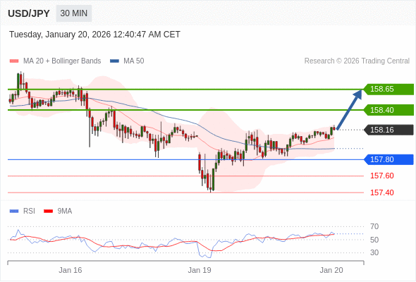 在 157.80 之上,看涨,目标价位为 158.40 ,然后为 158.65 。