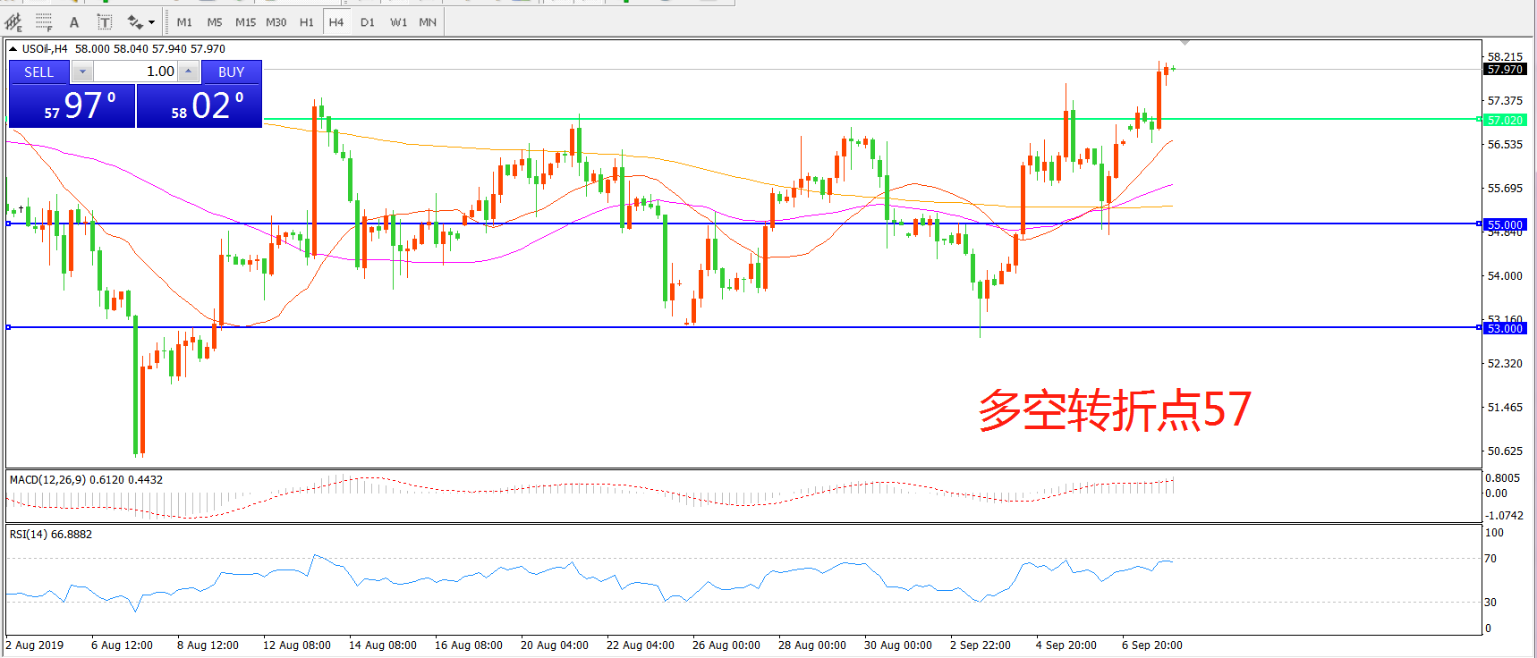 多空转折点:57.00