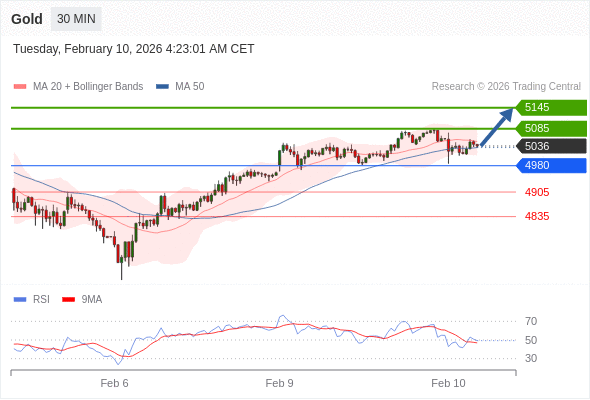 在 4980 之上,看涨,目标价位为 5085 ,然后为 5145 。