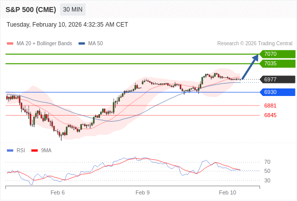 在 6930 之上,看涨,目标价位为 7035 ,然后为 7070 。