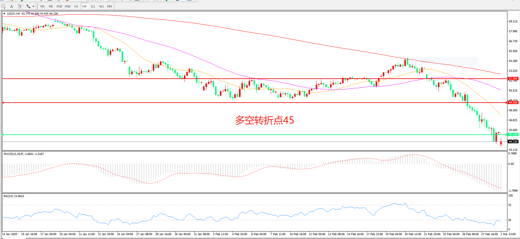 多空转折点:45.00