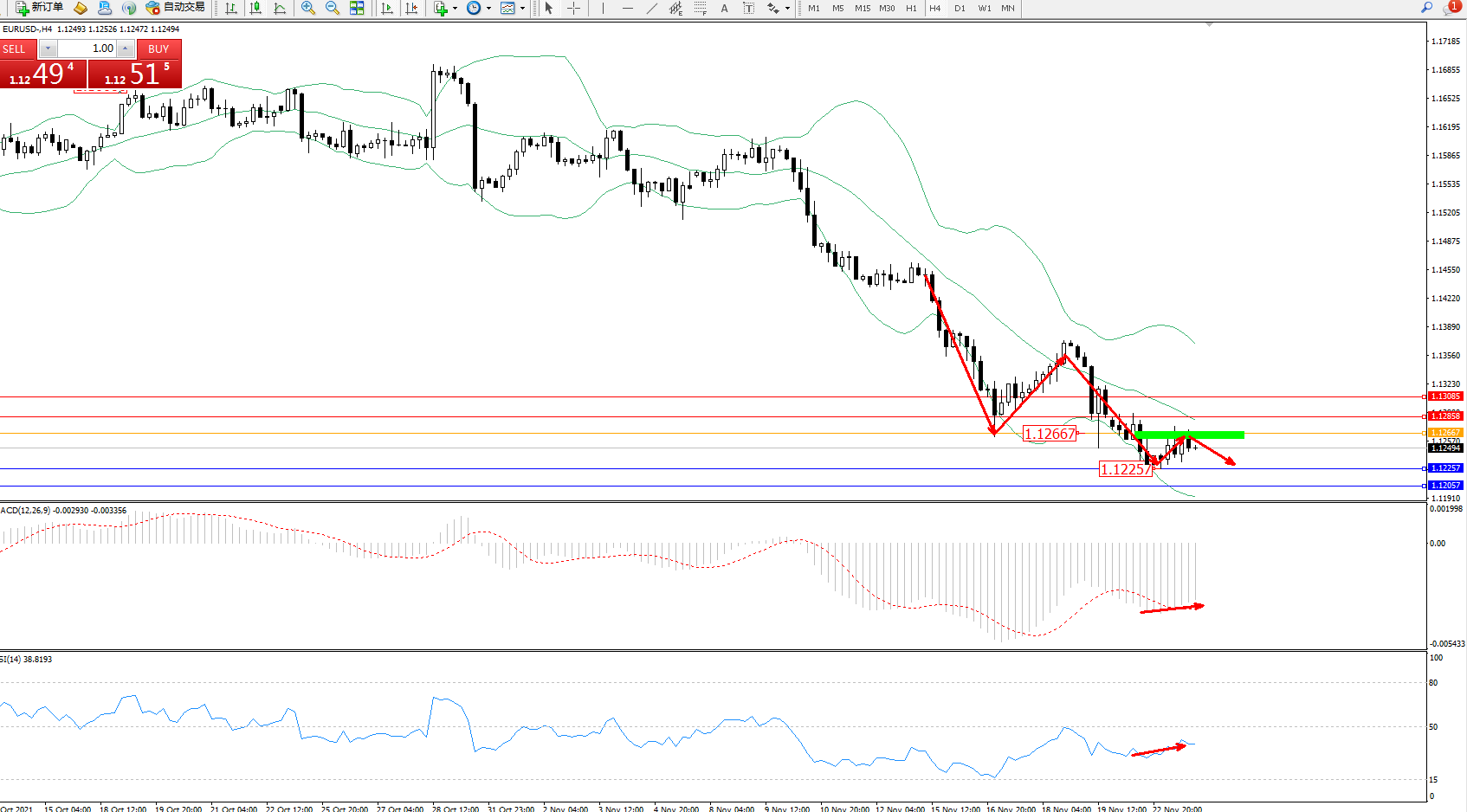 交易策略:1.12667下方看跌,目标1.12257、1.12057