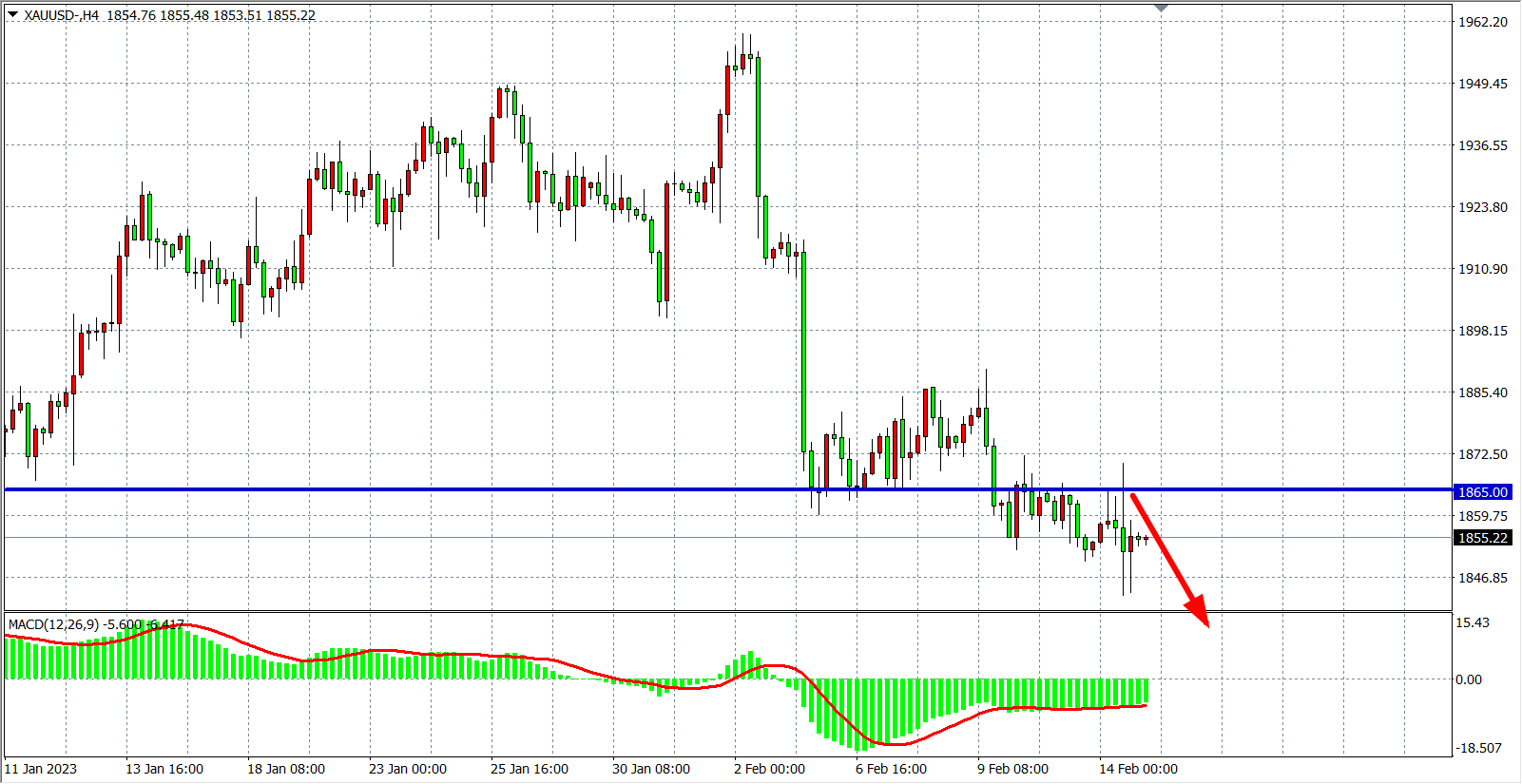 交易策略:在1865.00 之下看跌,目标1830.00         1820.00