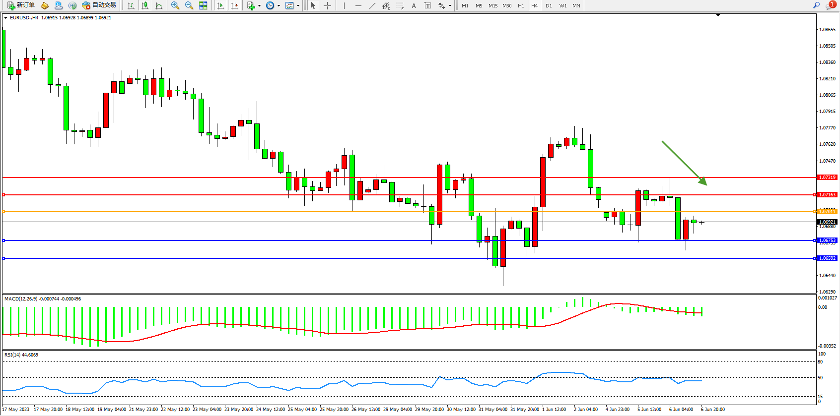 交易策略:1.07011下方看跌,目标1.06753  1.06592